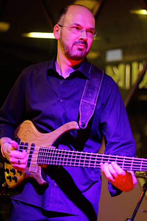 Uli spielt einen Buster Art 5 und einen ganz besonders schönen und seltenen BassLine Athlet in knalligem Rot. Der Athlet kommt als „Slap-Maschine“ in seiner Kölner Funk Band Cosmic Jam zum Einsatz.